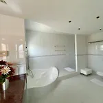 Tot de badkamerfaciliteiten van Grosse Sonnendurchflutete Wohnung villa behoren ook een apart toilet, een douche en een wasmachine. Een haardroger en handdoeken zijn inbegrepen voor extra comfort.